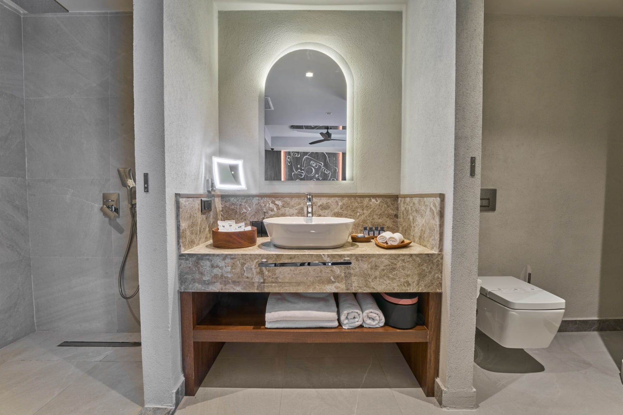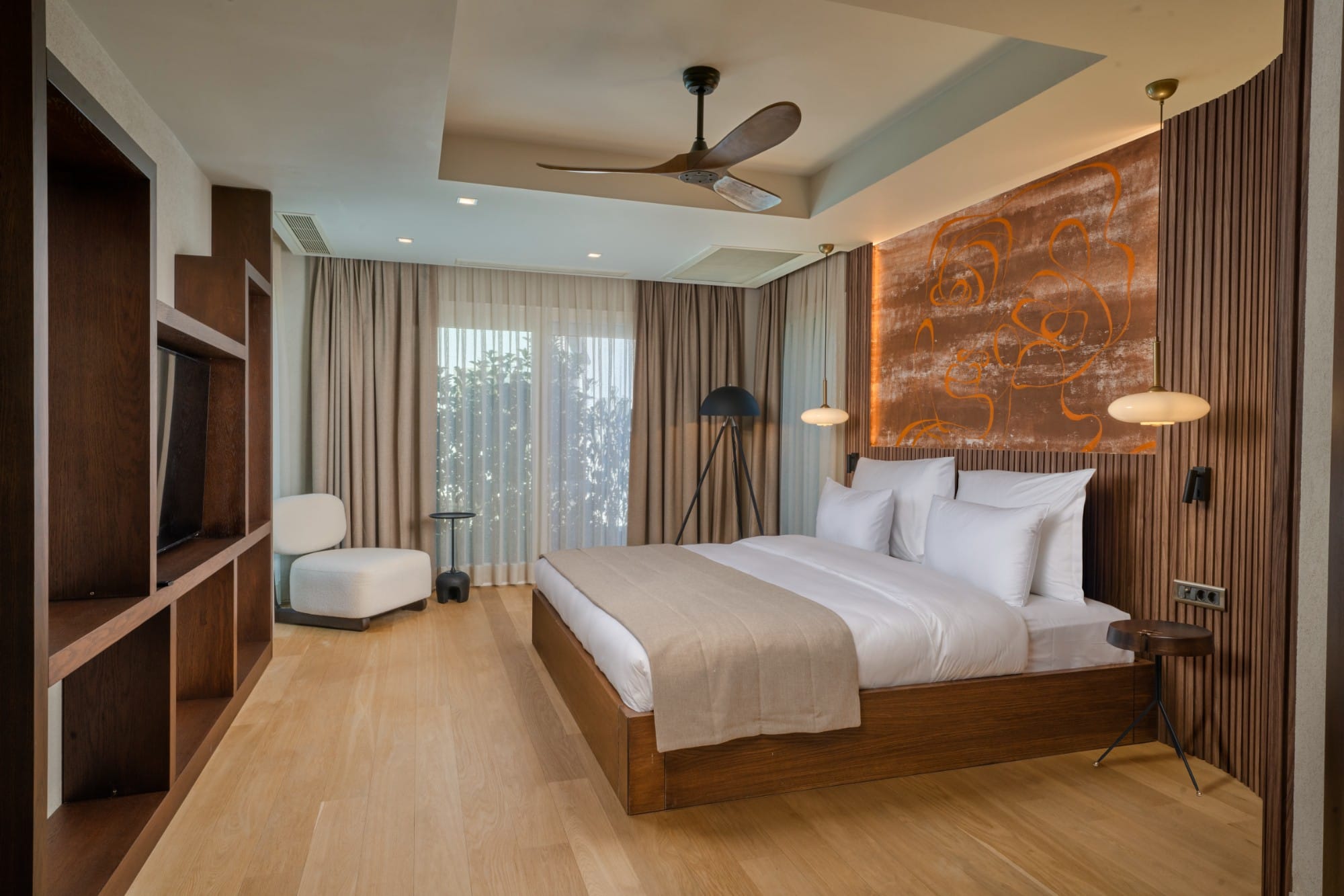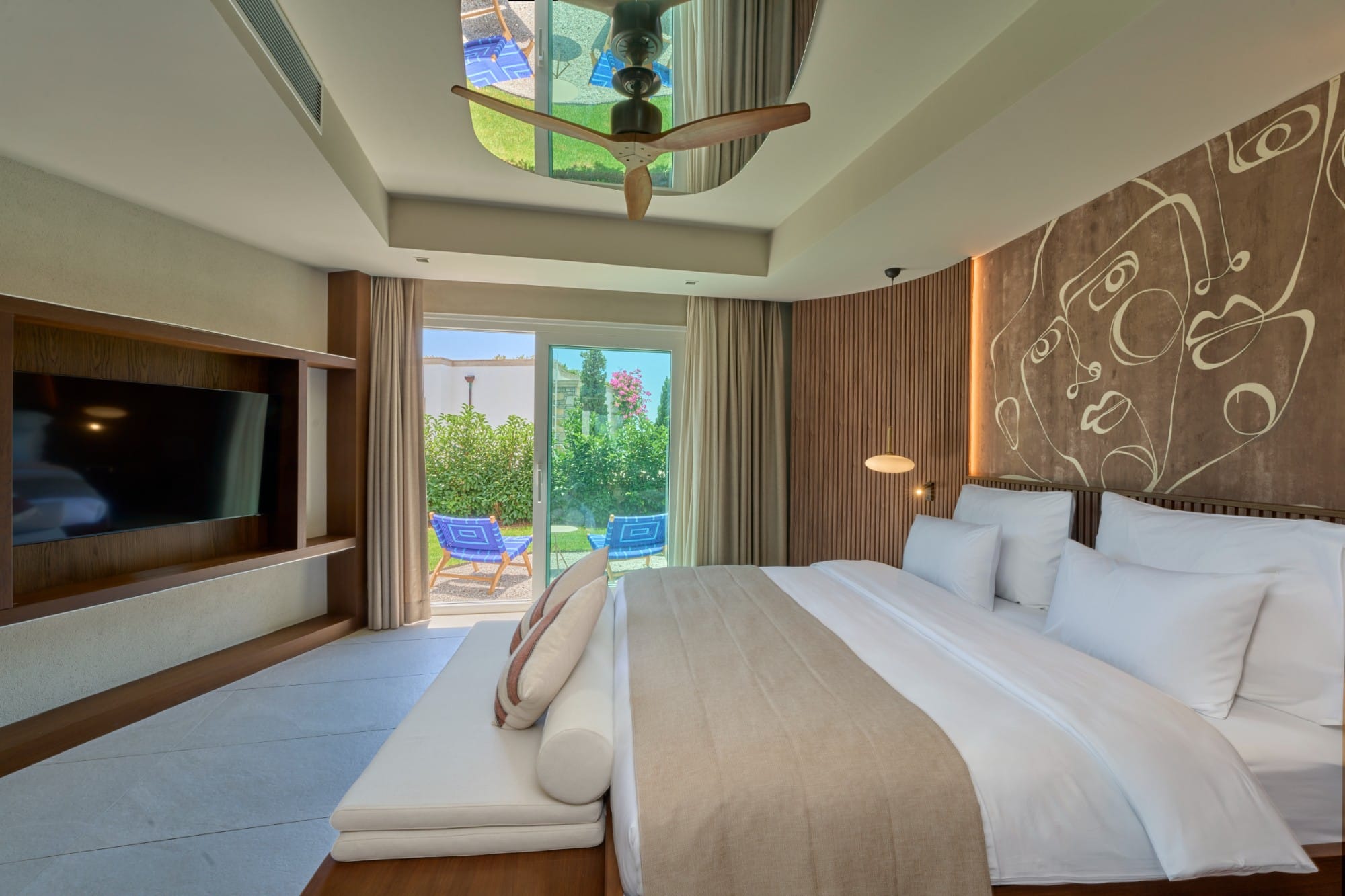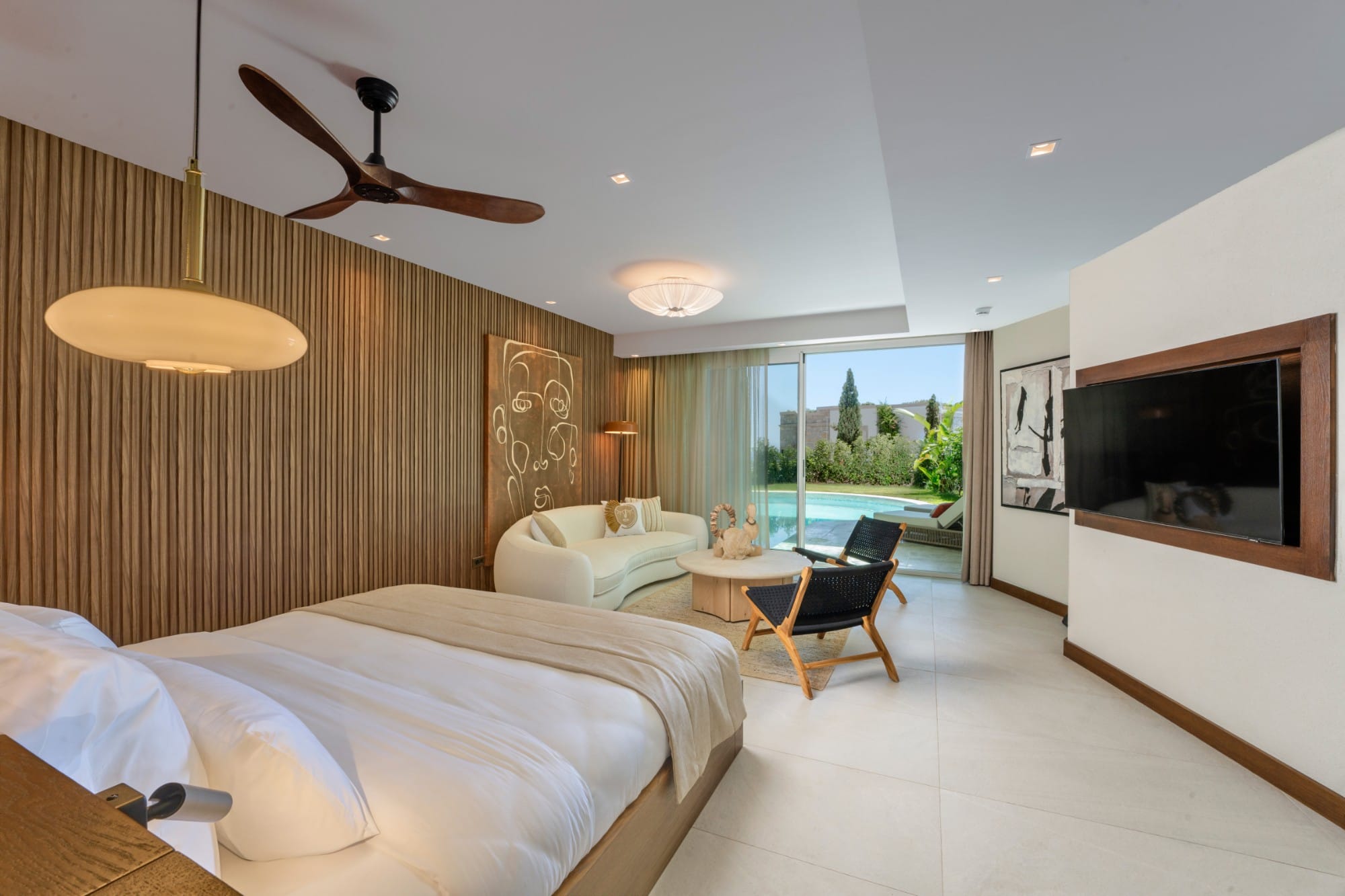 35 m²’lik bu odalar, çift kişilik yatak ve yalnızca size ait yüzme havuzuyla iki kişi için konforlu bir konaklama sunar.